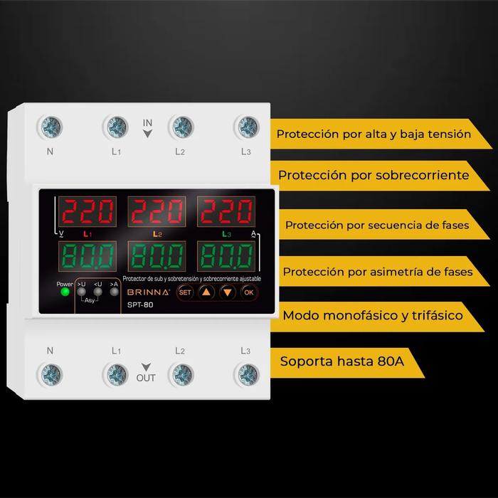 Protector de Tensión Trifásico Brinna SPT-80